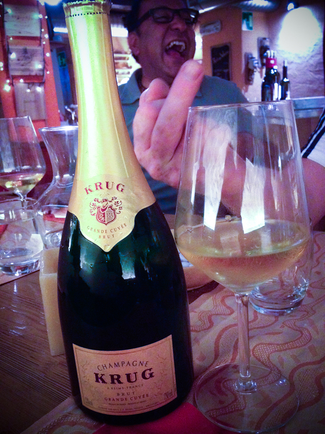 We had a great hotel at Bormio (the Rezia) and a fab restaurant as well (the Sunrise). Good fish, good wine and great company and eventually, as befitting of a great days piloting, the celebratory bottles of Krug had to be unleashed from the cellars. |